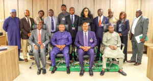 L-R: Former MD NPA, Eastern Ports, and BRP Committee Member, Felix Ovbude, Representative of the Acting Managing Director of NPA and Executive Director, Marine and Operations, Hon. Onari Brown, Chairman, Benin City River Port Project (BRP), Engr. Greg Ogbiefun, the Executive Director, Engineering and Technical Services, NPA, Prof. Idris Abubakar, other officials of both NPA and BRP during the event.