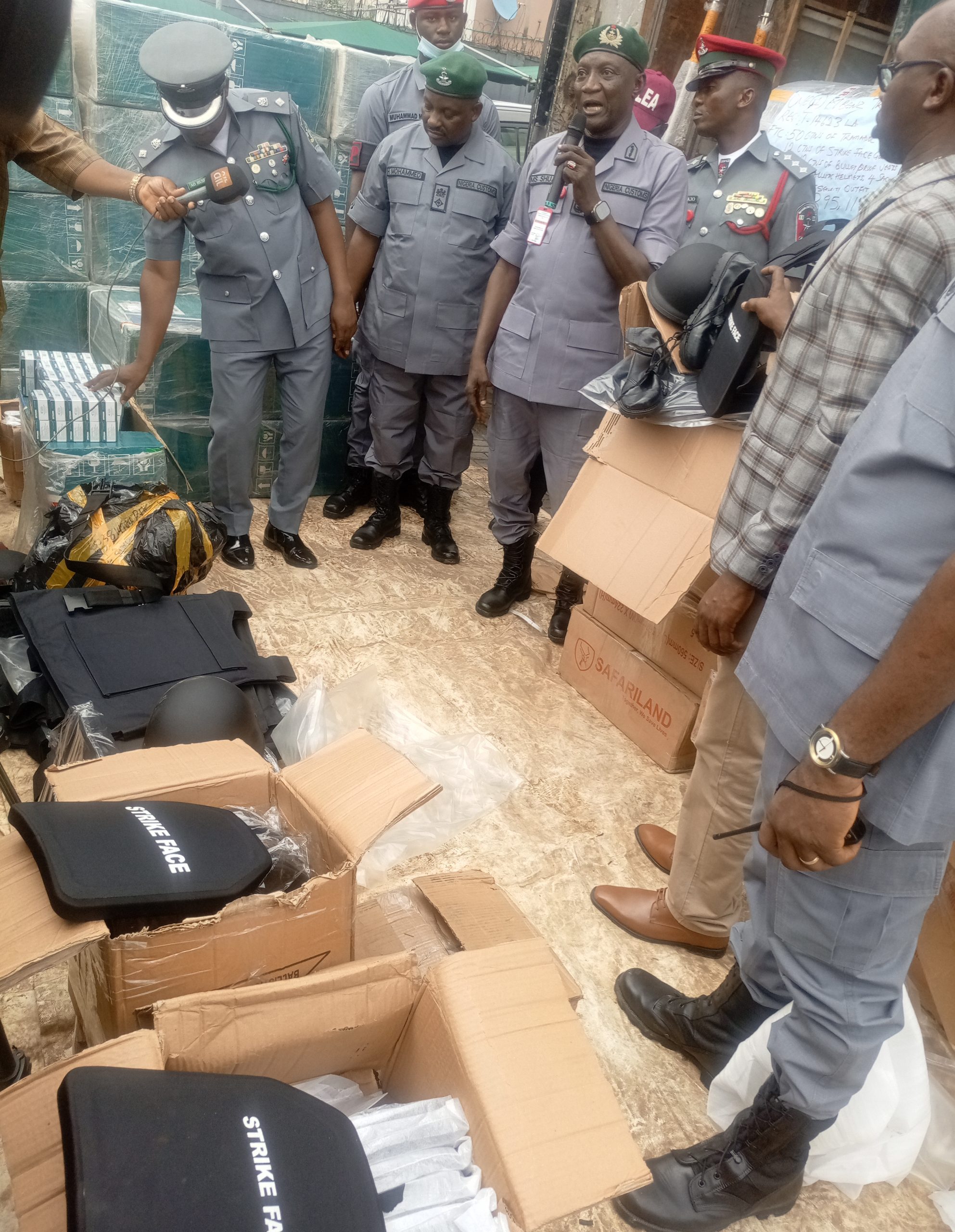The Federal Operations Unit, FOU Zone ‘A’ of the Nigeria Customs Service has impounded smuggled bullet proof vests, ballistic helmets, security uniforms and other prohibited goods valued at over N1.28billion.