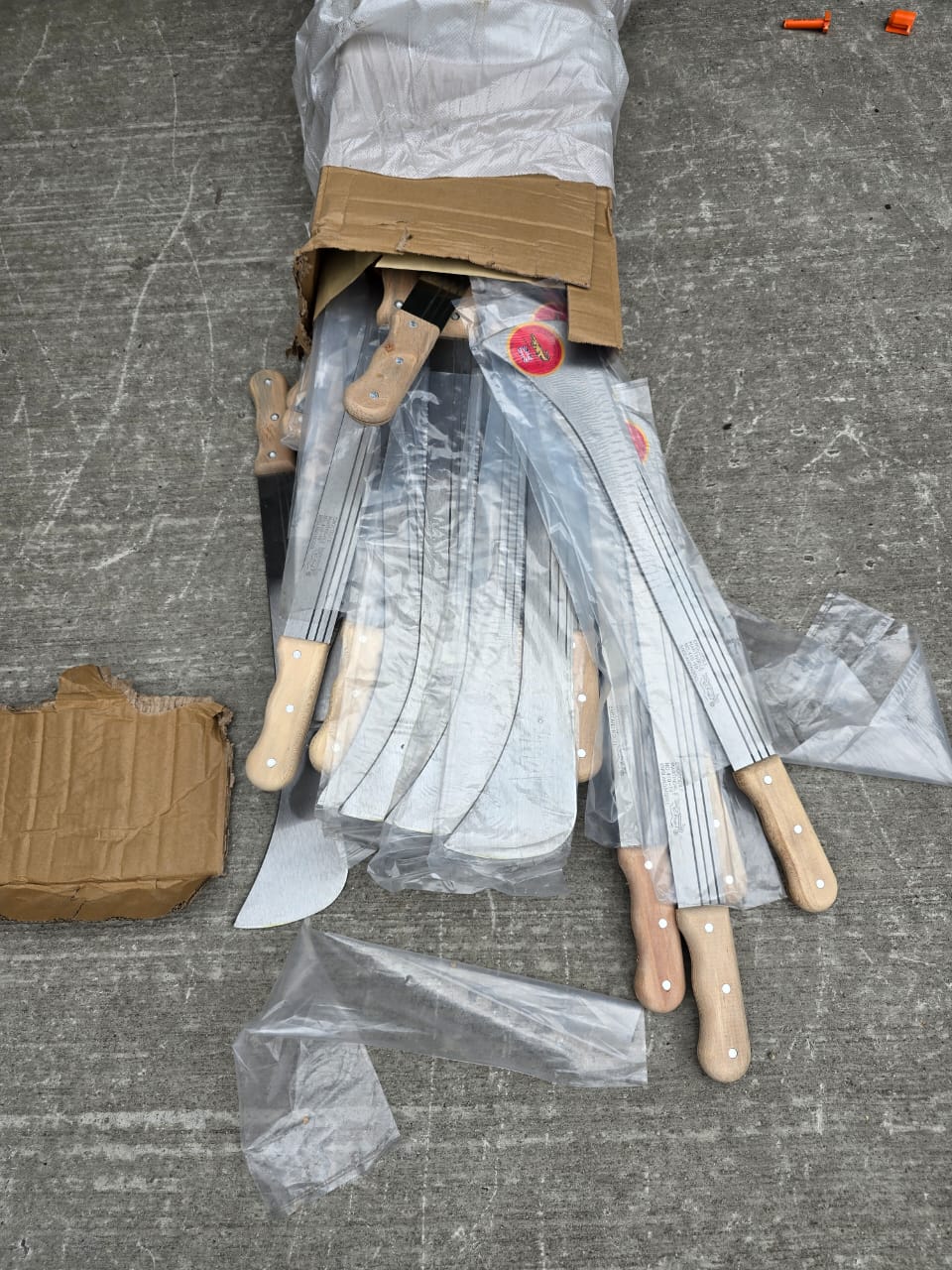 He said, “On Thursday, 18 July 2024, the command seized 2x40ft containers carrying twelve thousand (12,000) pieces of cutlass and machete; 2x40ft carrying four thousand, one hundred and twenty-nine (4,129) packages of frozen hen; 1x40ft container carrying three hundred and sixty-eight (368) jumbo bales of used second hand clothing; and 1x40ft container of expired pharmaceutical.
