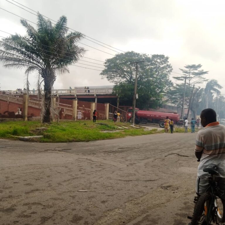 It was gathered that it took two fire service trucks to put out the fire and control the crowd.