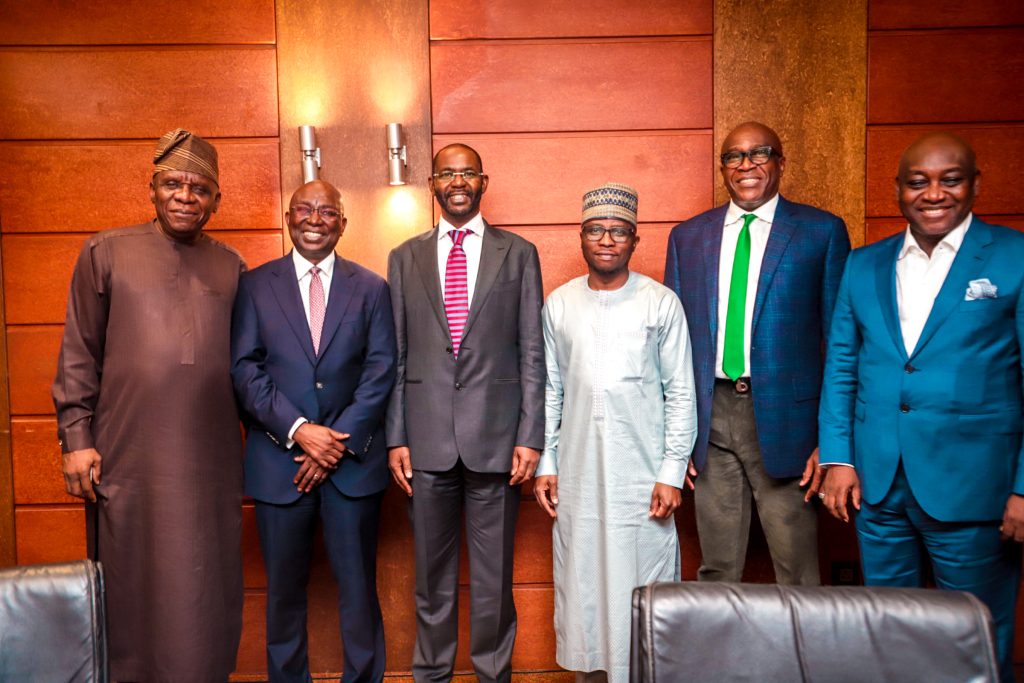 L-R: Executive Director Operations, Nigerian Maritime Administration and Safety Agency NIMASA, Engr. Fatai Taiye Adeyemi; Director General, NIMASA Dr. Dayo Mobereola; NIMASA Board Chairman Hon. Yusuf Hamisu Abubakar; Executive Director, Maritime Labour and Cabotage Services NIMASA, Mr. Jibril Abba; Executive Director, Finance and Administration, NIMASA, Mr. Chudi Offodile and a NIMASA Board Member, Mr. Babatunde Bombata, during the Board’s inaugural meeting in Lagos.