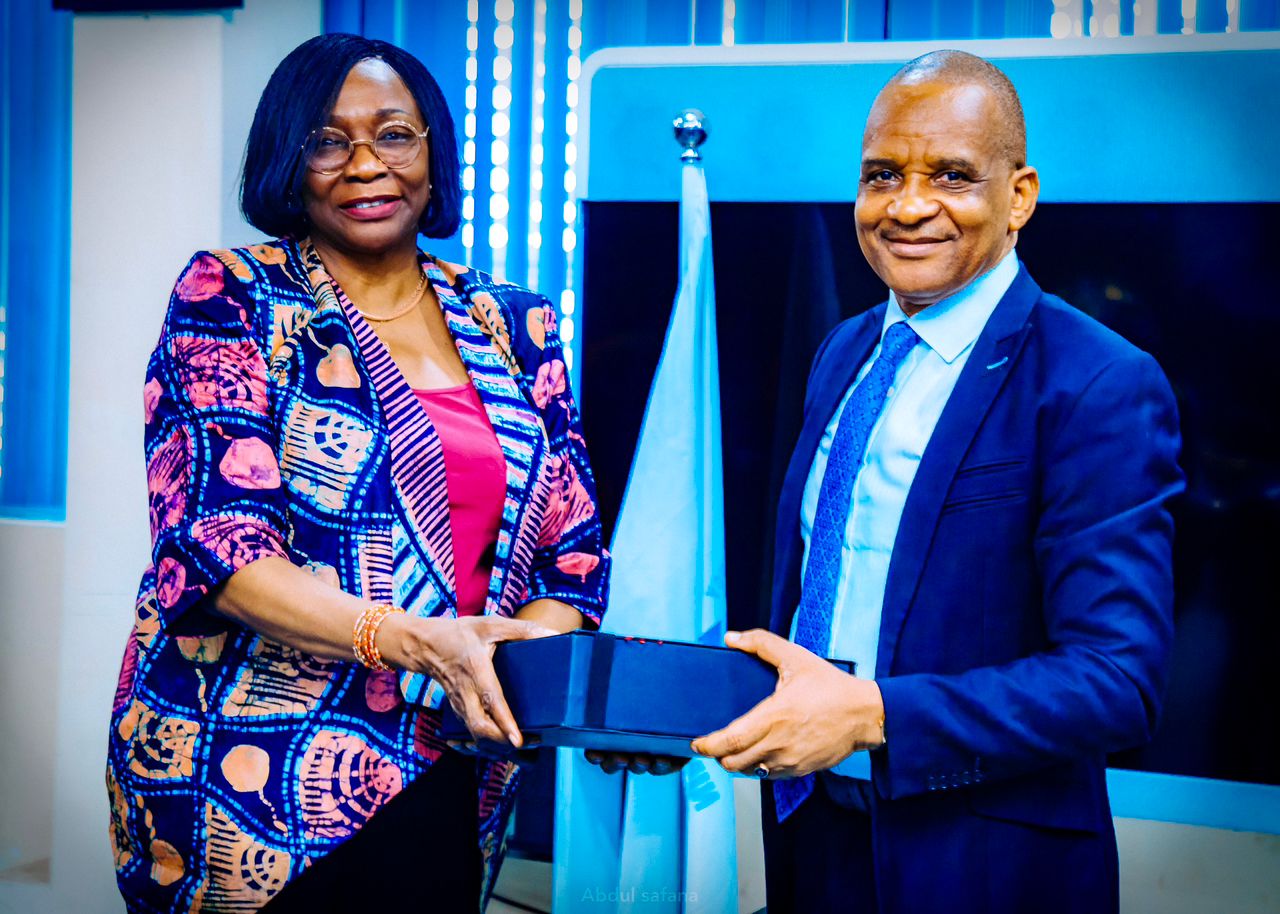 Director General, Nigerian Maritime Administration and Safety Agency, NIMASA, Dr. Bashir Jamoh, (Right) and Vice-Chancellor, University of Lagos, UNILAG, Professor Folasade Ogunsola during a courtesy visit by the Vice-Chancellor to the NIMASA headquarters in Lagos.