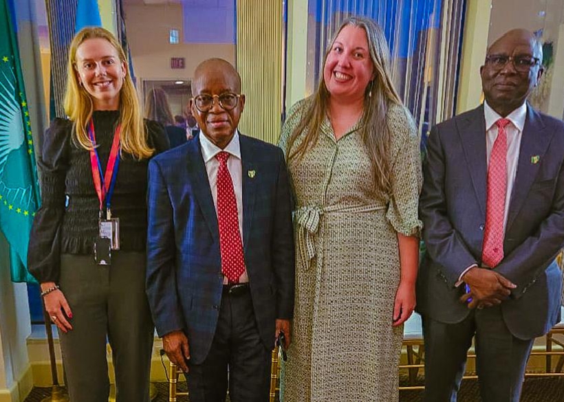 Minister of Marine and Blue Economy, Adegboyega Oyetola, CON (2nd left), Director General, Nigerian Maritime Administration and Safety Agency (NIMASA), Dr. Dayo Mobereola (right) and some and African Permanent Representatives to the United Nations, when Oyetola led Nigeria’s International Maritime Organization (IMO) campaign in New York, United States of America, on Wednesday.