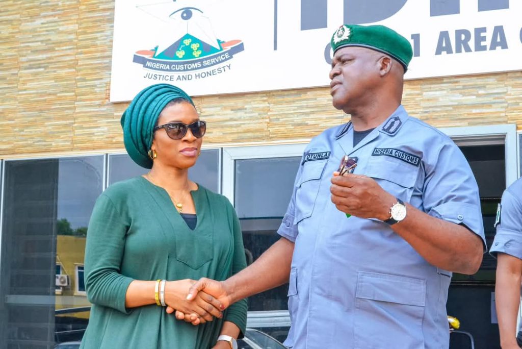 She was received by Comptroller G. Otunla, Area Comptroller of the Nigeria Customs Service at the Idiroko Command.