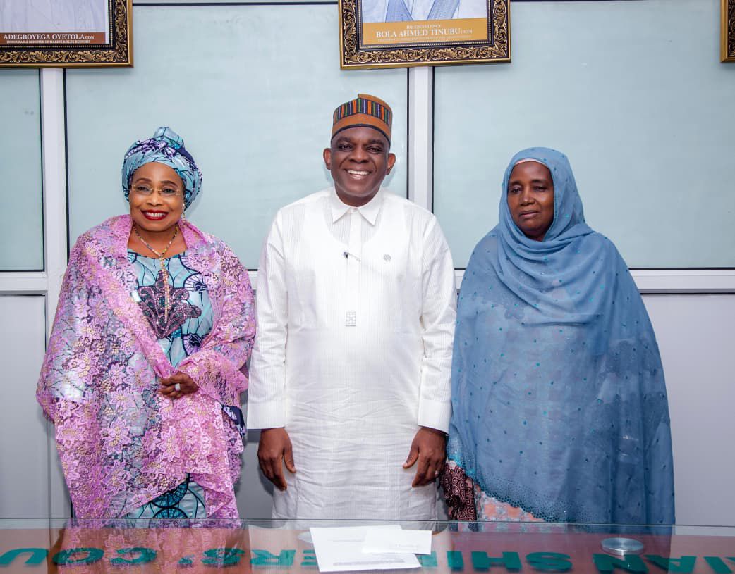 The Executive Secretary/CEO, Nigerian Shippers’ Council(NSC), Dr. Pius Akutah(middle); Director- General, National Agency for the Prohibition of Trafficking in Persons(NAPTIP), Hajia Binta Adamu Bello, and a Board of Trustees( BoT) member, MMS WoFHoF Initiative, an NGO, during a visit to the Council in Abuja last week.